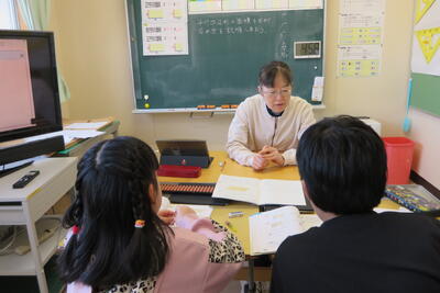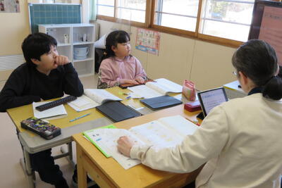 今日も3人並んで一生懸命考え、説明し合っていました。
