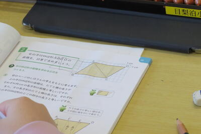 5年生が算数で「平行四辺形の面積」の学習をしていました。