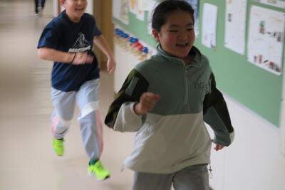 廊下を激走!?「逃走中」をしているところです。