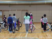 4月21日実施しました。天候が悪かったので体育館で行いました。交通安全に関するビデオを見た後、体育館で自転車の正しい乗り方を学習しました。