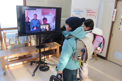 各校、玄関先においた端末で接続し、オンラインで朝のあいさつをするというものです。