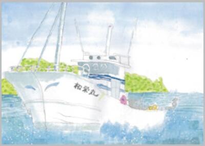 佳作に選ばれたのはこの作品です!力強く海の上を走る様子が描かれています。