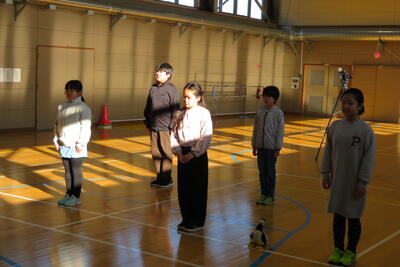 直射日光を浴びながら(?)全校児童で表彰式を行いました。