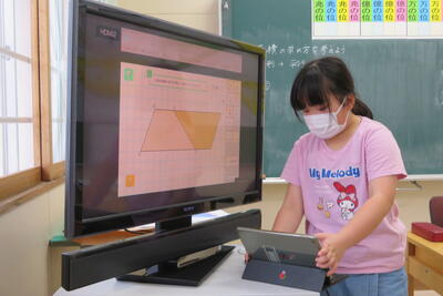 「台形を2つ合わせると、平行四辺形になります。」しっかり説明しました。