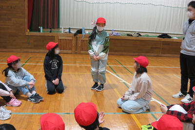 目梨泊小と岡島小の全校児童が参加しての「小小交流」が行われたのです。