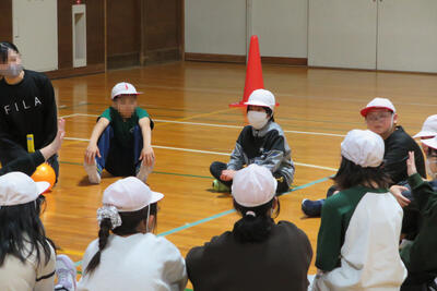 4年生。体育の学習でした。最初に自己紹介しているところです。