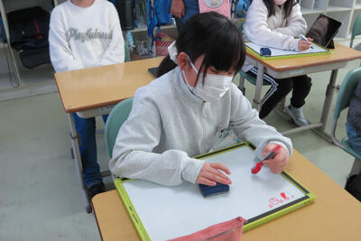 5年生は、国語の学習でした。これは「絵しりとり」をしているところです。